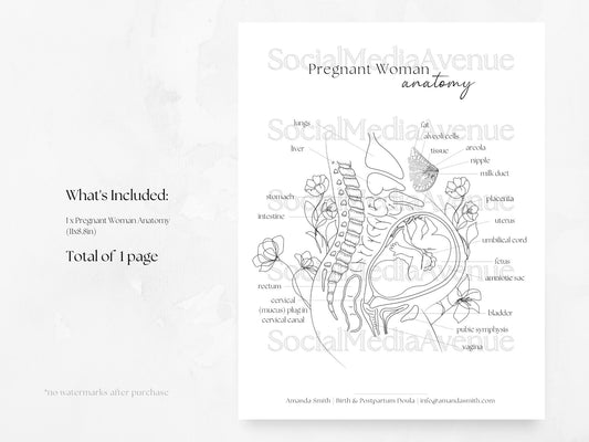 Pregnant Woman Anatomy, Printable