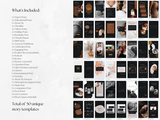 175 Doula Bundle: Post, Story, and Highlight Cover Templates in Black
