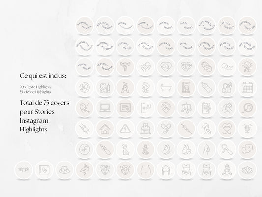 175 Doula Modèle De Bundle: Publications, Stories, Covers pour Instagram highlights (French)